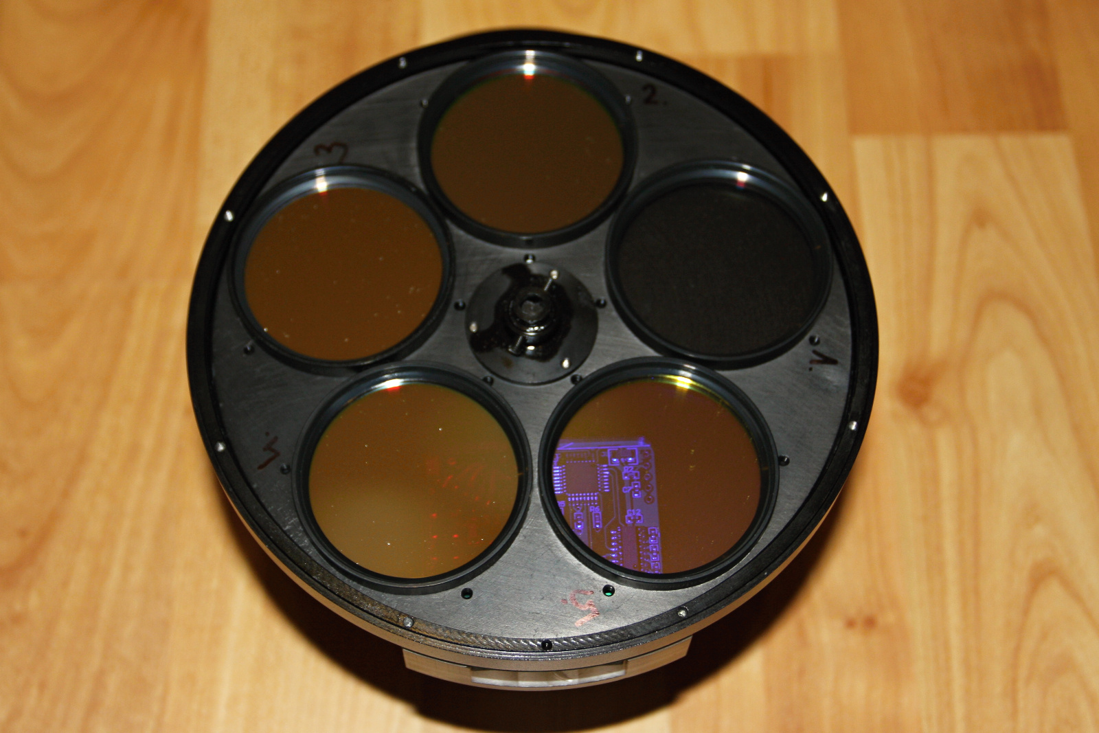 Monochromatická CCD kamera QHY9 s 2'' filtrovým kolem V létě 2009 jsem se rozhodl pořídit si monochromatickou CCD kameru ze senzorem KAF 8300. Tato kamera splňovala parametry, které jsem potřeboval pro fotografování přes úzkopásmové filtry, zejména H-alfa a kombinací RGB kanálů do barevného snímku. Sice jsou na trhu kamery s lepšími parametry, zejména vynikající Atik 314+, která má kvantovou účinnost velmi vysokou, ale zato velmi malý senzor ze 1392x1040 pixelu. To je žalostně málo, jelikož jsem zvyklý fotit na daleko větší senzory, proto Atik 314+ byl pro mě zapomenut. V roce 2009 se objevil na trhu senzor KAF 8300, který začal do svých kamer montovat Qiu, čínský výrobce CCD kamer, zejména populárních kamer QHY8. Ještě v půlce roku, jsem přemýšlel do jaké kamery jít, již v této době byly dvě kamery QHY9 u nás v ČR, jednu vlastní Lukáš Kolář a druhou Honza Hovad. Zpočátku měla kamera problémy s vlhkostí na senzoru, na kterou si stěžovaly oba kolegové. Zprvu se tento problém řešil vložením absorpčních vysoušečů, ale tyto vysoušeče se nedají použít na stálo a musí se rozebírat kamera kvůli výměně za nové a tento problém, dosti zásadní ve mně nevzbuzoval pocit kvalitní a profi kamery. Naštěstí tohle si uvědomil i výrobce a začal dávat k senzoru destičku s vyhříváním a problém z rosení senzoru naprosto zmizel. Další zásilka monochromatický CCD kamer QHY9 byla již s tímto vyhříváním senzoru a nic už nestálo v cestě koupit mojí první chlazenou CCD kameru. Ještě u prodejce jsme rozebraly kameru, aby jsme se podívaly jakým způsobem a jestli vůbec výrobce vložil vyhřívací část k senzoru. Našli jsme úzký proužek vložené destičky dokola posázenými výkonnými kondenzátory, nebo něčím podobným co během provozu hřeje a nedovolí vzniknutí vlhkosti. Ke kameře jsem rovnou objednal i automatické filtrové 2'' kolo a dokoupil celou flotilu 2 palcových filtrů Astronomik SII, L,R,G,B. Již z dřívějška jsem používal H-alfa a OIII k digitálnímu fotoaparátu EOS 40D. Musím říct, že mě kamera velmi překvapila, po prvním zprovoznění a stáhnutí prvního ostrého snímku, jsem marně hledal šum, na který jsem byl zvyklý u dig. zrcadlovek. Díky rychlému vyčítání snímku se velice dobře hledá kompozice, které jsou skoro Live (zpoždění cca 1 sec.) Zde si můžete prohlédnou snímky pořízené monochromatické CCD kamerou, ze kterých mám velkou radost.