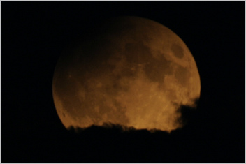 zemskému stínu. Značky na dráze jsou polohy středu měsíčního kotouče pro
