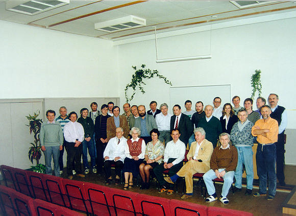 Kolektiv pracovníků Sekce elementárních částic Fyzikálního ústavu AV ČR v Praze-Libni v květnu r. 1998.