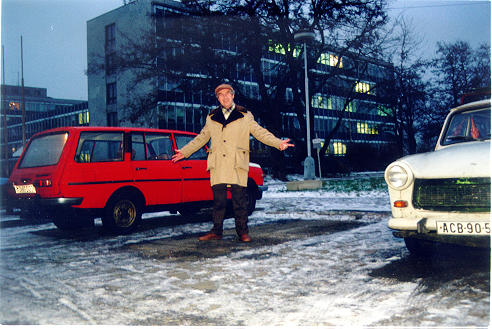 JG si potrpí na dvoutakty [před Fyzikálním ústavem Akademie věd ČR v Praze-Libni].