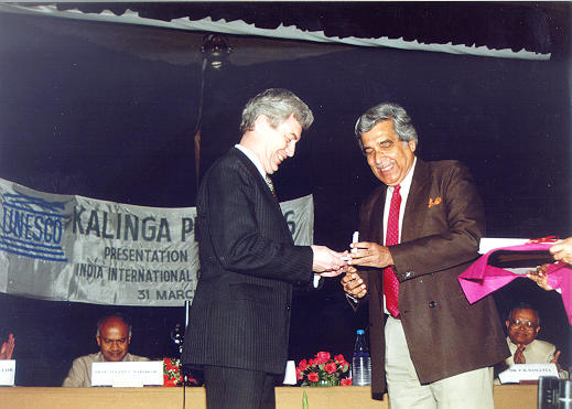 JG prebírá 31. března 1997 z rukou indického ministra pro vědu a techniku Dr. Alagha Cenu UNESCO Kalinga za popularizaci vědy.