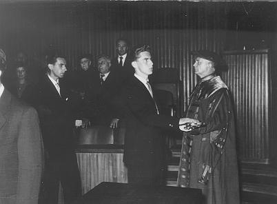 V červenci 1959 jsem promoval na fyzika v Karolinu v Praze. Hned za mnou kráčí Zdeněk Sekanina, můj jediný kolega ze specializace astronomie, nyní kometární specialista v JPL, Pasadena.