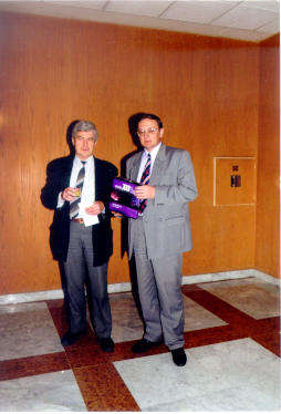 JG [vlevo] se spoluautorem a iniciátorem projektu CD-ROM ASTRO 2001 Dr. Zdeňkem Pokorným z Brna při prezentaci projektu v Bratislavě [únor 1998].