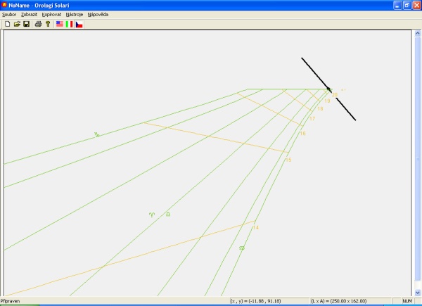 - Nastavení - zvolíme druhy hodinových čar (francouzské, babylonské, temporární, soumrakové, italské a italské kostelní),datové čáry, analema